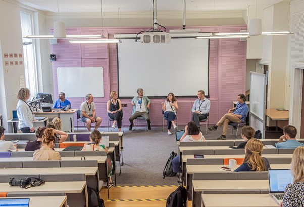 Prof. James Wilsdon, RoRI Executive Director, moderates the panel discussion at the conference opening (Photo: Oleksandr Berezko)